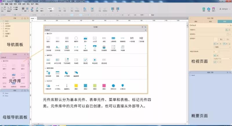 元件庫默認分為基本元件、表單元件、菜單和表格、標記元件四類(lèi)。元件庫中的元件可以自已創(chuàng )建,也可以直接從外部導入。